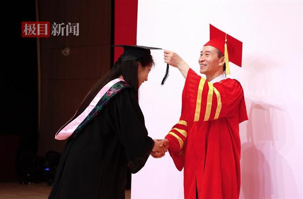 孔建益校长为学生拨穗(极目新闻通讯员 胡毅 摄)