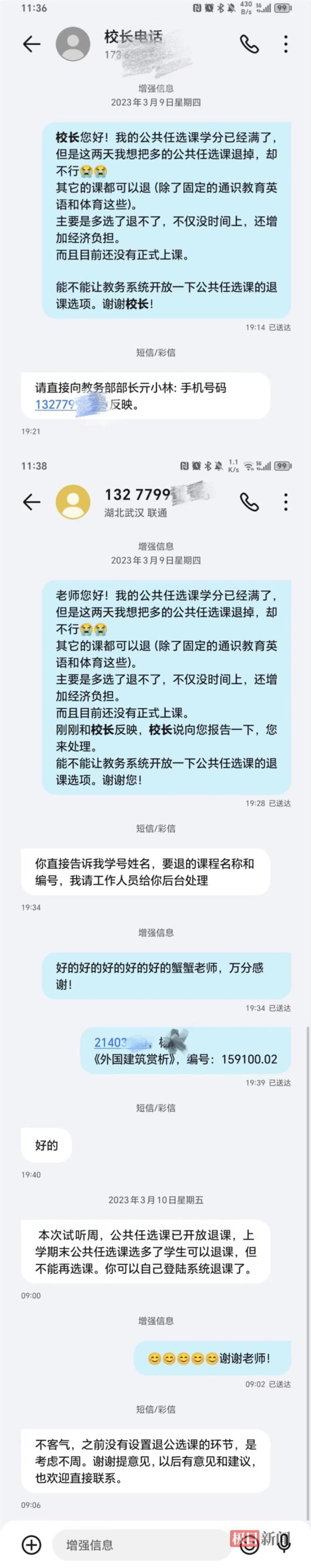 学生给校长发的短信