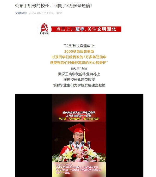 孔建益校长共收到3万多条短信