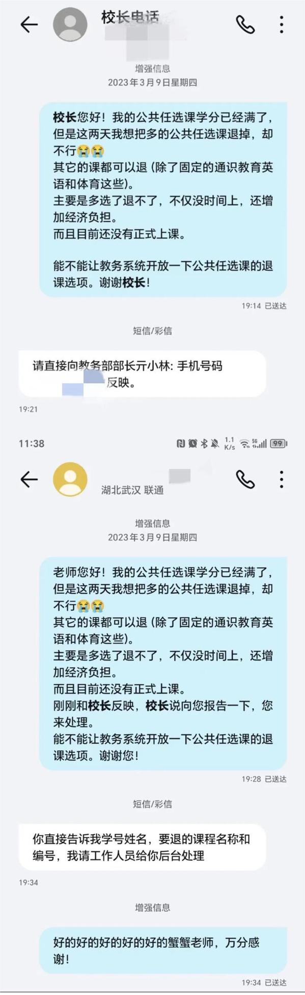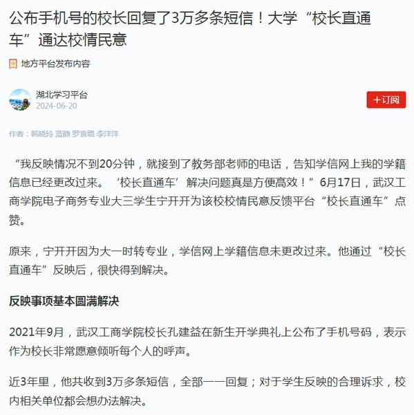 近3年里,他共收到3万多条短信,全部一一回复;对于学生反映的合理诉求,校内相关单位都会想办法解决。