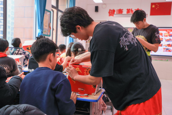 新闻中心讯(记者 陈雯茜 王可睿)12月19日下午,武汉市洪山区第十小学六年级教室里锣鼓声声、欢笑阵阵。两只色彩醒目的“醒狮”踏着欢快的鼓点跃入孩子们中间,时而威风凛凛,时而憨态可掬,逗得孩子们欢呼雀跃。这精彩的一幕,来自BB贝博艾弗森官方网站公共课部为小学生们精心组织的传统文化体验课。
