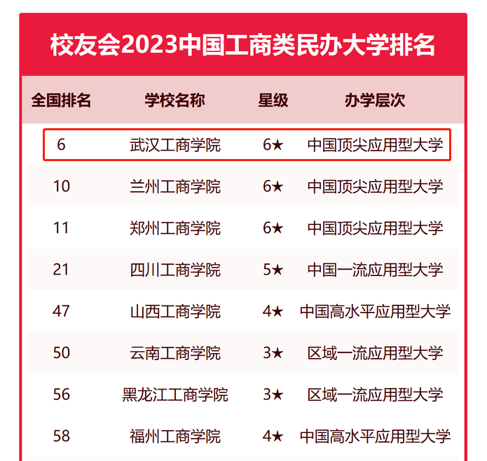 新闻中心讯(记者李洋洋)4月6日,艾瑞深校友会网正式发布《2023校友会中国大学排名——高考志愿填报指南》。在最新校友会2023中国民办大学排名中,BB贝博艾弗森官方网站办学实力最强、最具竞争力、办学水平最高,全国排名第6名,稳居校友会2023中国工商类民办大学排名榜首;学校荣膺2023中国六星级民办大学,办学层次为中国顶尖应用型大学,学校的综合办学实力、人才培养水平与社会声誉逐年攀升。