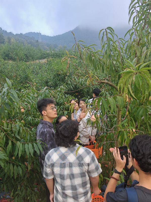 科技如何赋能农业?答案写在花果山桃子种植基地的景象里。师生们现场观摩了无人机在桃林间高效穿梭运输果实的场景,并在村民指导下亲手采摘。从“实验室”到“田间地头”的飞速发展,让“科技是第一生产力”的论断变得无比直观,也坚定了学生们用所学服务乡村的信念。