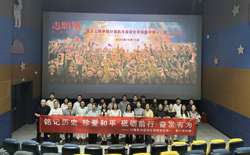 为弘扬伟大抗美援朝精神,厚植爱国主义情怀,10月11日下午两点三十分,计算机与自动化学院教师第一、二党支部组织全体党员前往影院集体观看爱国主义题材影片《志愿军:浴血和平》,开展“铭记历史 珍爱和平 砥砺前行 奋发有为”红色观影活动。