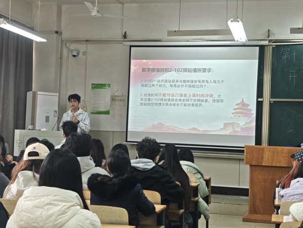 会议第二、三项,新闻学学生党支部邢丽树同志深入讲解了党支部活动策划与组织的各项规范;法学党支部张世权同志向同学们展示了外语楼站岗与一站式社区值班的具体内容与相关要求。最后,夏映昕同志向同学们着重强调,参与党校志愿服务既要满怀热忱、主动作为,更需恪守纪律、秉持严肃态度。