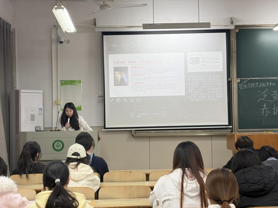 最后,唐雪梅同学将大家的视野拉回到了京汉铁路大罢工那段血与火的历史。她生动讲述了陈谭秋同志在京汉铁路的革命活动,以及林祥谦和施泽在工人罢工中发出的时代强音。唐雪梅同学的讲述慷慨激昂,她总结道:“我们看到精神的火炬正在一代代青年手中传递。今天我们在这里共同翻阅了一本本用生命与行动践行的相册,每一张照片都是一段值得被铭记深刻的历史。每一个故事都是赤诚初心不改的见证。”