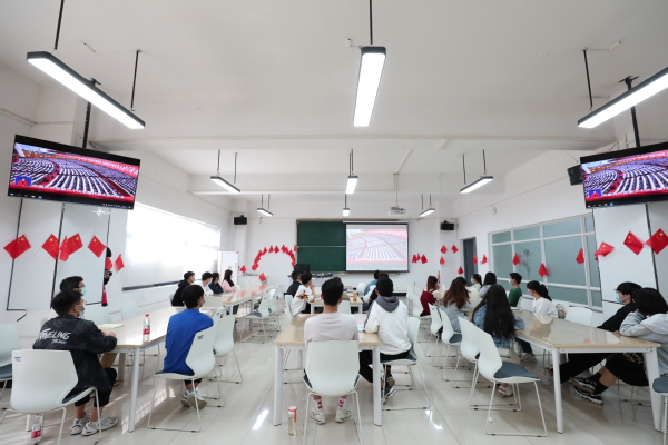 图为经外学院师生观看党的二十大开幕大会 摄影:张婉静