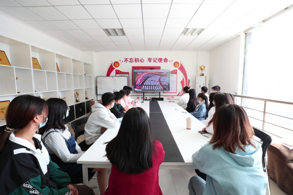 图为环生学院师生观看党的二十大开幕大会直播 摄影:孙欢欢