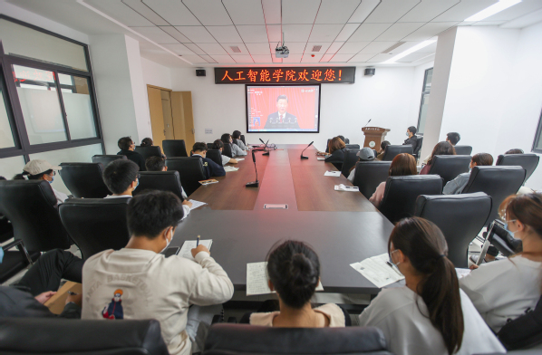 图为人工智能学院师生观看党的二十大开幕大会 摄影:李若源