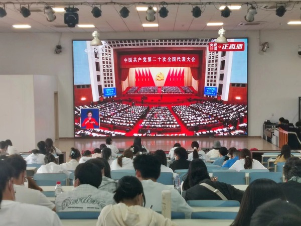 新闻中心讯(记者 蓝静 李洋洋 孙欢欢)10月16日,中国共产党第二十次全国代表大会在北京人民大会堂开幕,习近平同志代表第十九届中央委员会向大会作报告。BB贝博艾弗森官方网站组织干部师生通过各种方式,集中收看党的二十大开幕盛况。