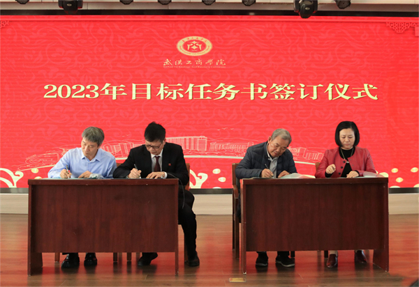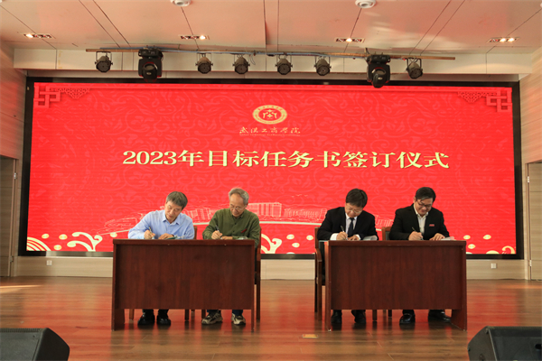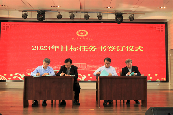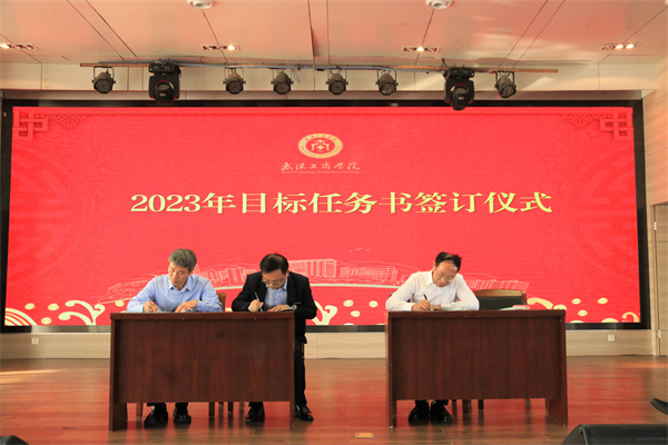 各代表团发言结束后,孔建益校长与各个学院以及职能部门代表签订了2023年度目标责任书。