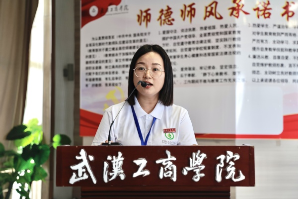 管理学院副教授张丹丹作为教师代表发言,她向全体参训新教师提出三点期望:一是要关爱学生,尊重学生;二是要研究教学,研究学生;三是要持续学习,反复实践。物流学院教师周家昊作为新教师代表发言,他认为此次新教师培训是一次宝贵的学习机会,不仅可以和新教师们交流学习,也可以向优秀教师前辈们请教学习、汲取经验,期待在此次培训中收获更多的知识,补齐自身短板。