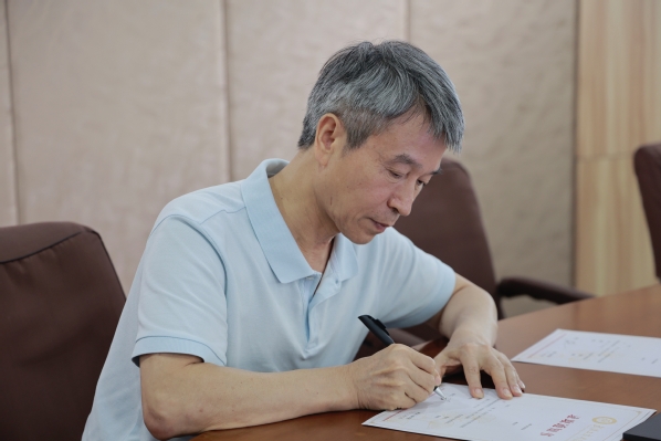 图为校长孔建益在首批2023年新生录取通知书上签字 摄影:芮雨欣