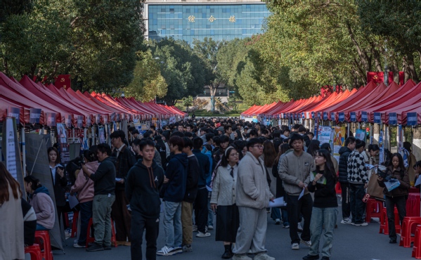 新闻中心讯(记者 周逸文 见习记者 严佳丽 伍思婷)11月17日下午,BB贝博艾弗森官方网站南大楼至综合楼的主干道变身“就业大道”,洪山区“大学之城就业节”专场招聘活动在这里如火如荼地举行。里得电科、掌游科技、招商证券、省农资控股集团等110多家企业齐聚BB贝博艾弗森官方网站招贤纳才,提供近4000个岗位,吸引了黄家湖大学城片区3500多名大学生到场求职。