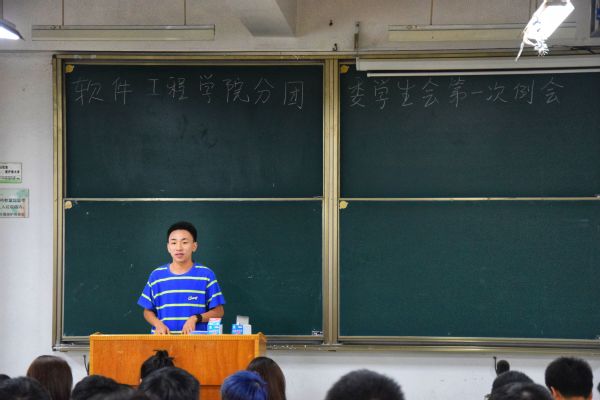 大会首先由刘笑夏老师致辞。刘笑夏老师表示自己很高兴新同学加入软工的学生会,希望大家能尽职尽责,实现自身的价值。不要让大学四年白白浪费。紧接着由副书记易扬进行了简单的自我介绍以及对新同学的一些期望,希望每位新同学能够在学生会学到很多的东西,同时强调纪律例如开会不能讲话等。最后由学生会主席吴昙发言:首先他强调的也是纪律。开会期间不得玩手机、更不能越级打小报告等事项。