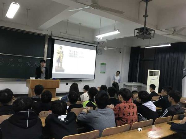 为纪念马克思诞辰200周年,深切缅怀马克思的丰功伟绩,激发学生党员的爱国热情。2018年10月21日晚上,我班在教室举办了“纪念马克思诞辰200周年”的主题班会,主要以ppt形式讲解,全班同学均参与其中。