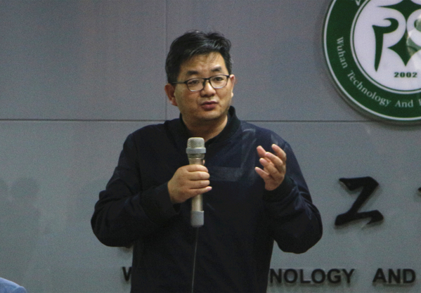 吴礼彬随后介绍了工程训练营的课程方向和考核模式。他指出,工程训练营的课程内容包括程序设计训练和电子制作两部分,程序设计训练将以C语言编程为训练内容,合作企业武汉精锋微控科技有限公司将安排辅导老师进行辅导和答疑,并在期末结束后检查验收;电子制作则选定Arduino智能小车的拼装和控制为训练内容,在教学过程中给同学们发布任务,最后将智能小车拼装和调试成果作为成绩评比,并且在学院内开展智能车竞赛。
