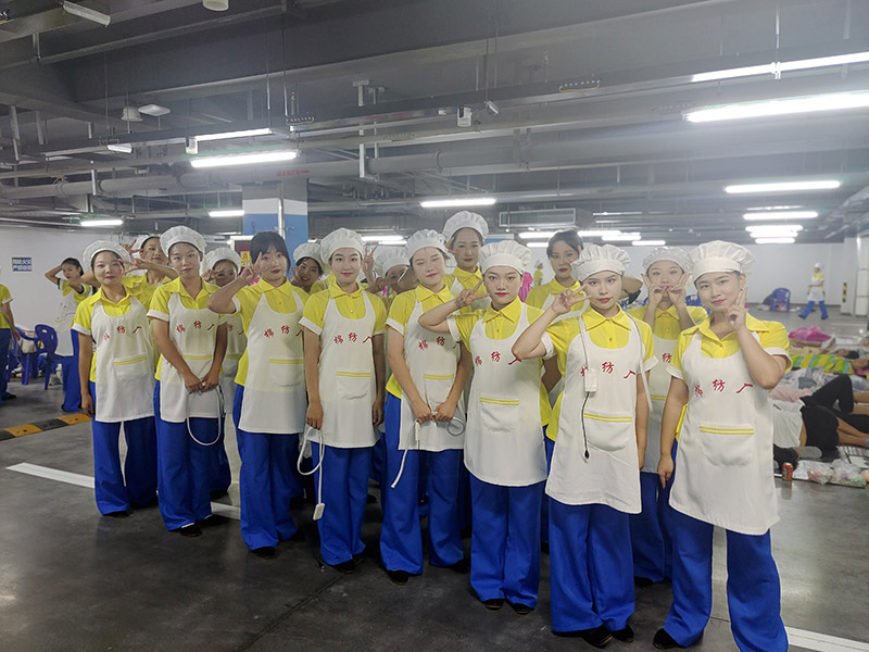 参演《纺织舞》的学生在排练现场合影
