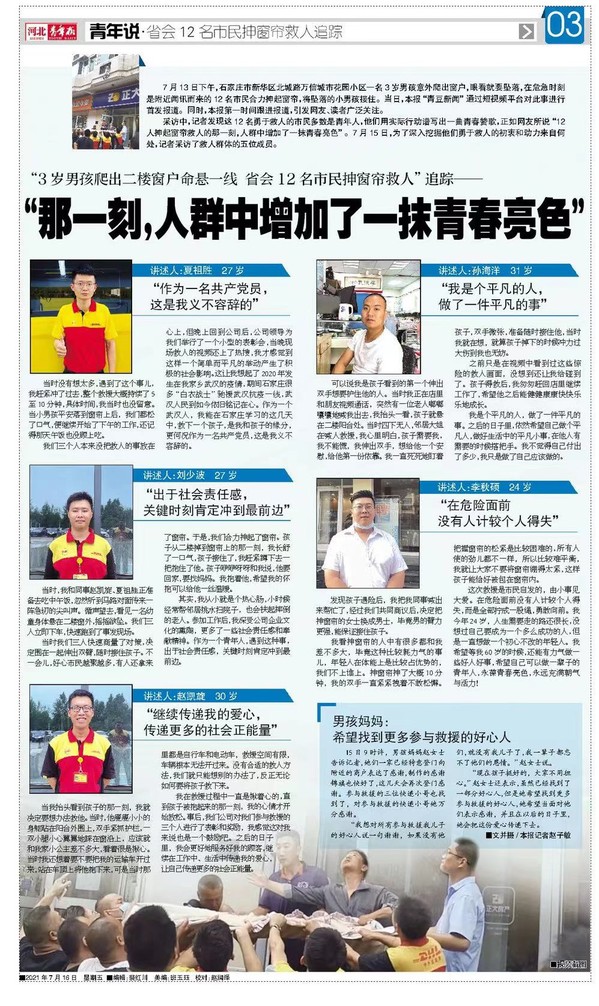 河北青年报:“那一刻,人群中增加了一抹青春亮色”