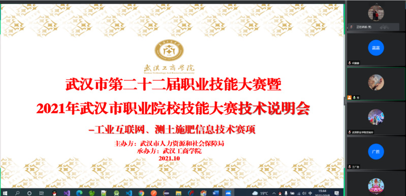10月8日19:30-21:00,由BB贝博艾弗森官方网站承办的武汉市第二十二届职业技能大赛暨2021年武汉市职业院校技能大赛“工业互联网”、“测土施肥信息技术”赛项技术说明会在腾讯会议平台上举行,参会人员包括武昌职业学院、武汉交通职业学院、湖北生物科技职业技术学院等八所院校的12位参赛单位裁判员,会上通报了竞赛时间安排以及相关工作的进展情况。