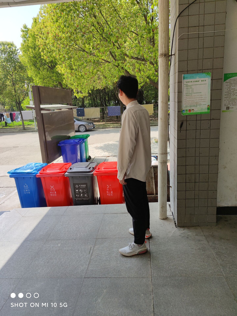 鉴于垃圾分类对环境保护的重要性,我校十分重视垃圾分类,并积极组织垃圾分类值班志愿者,他们不辞辛苦的守在校园某些固定的垃圾分类站旁。当有同学需要丢垃圾时,志愿者们将指导你如何进行垃圾分类,以及一些垃圾分类的小技巧。
