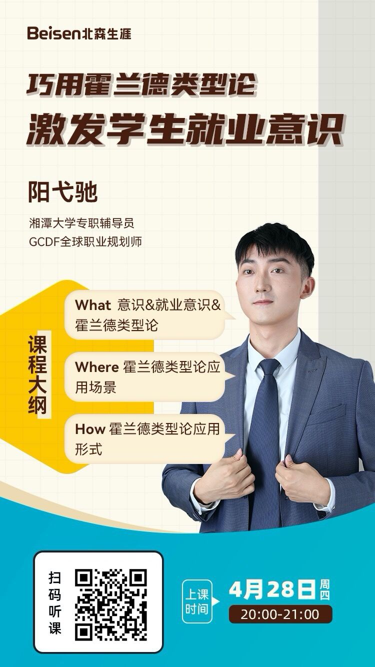 由湘潭大学 阳弋驰老师带来《巧用霍兰德类型论激发学生就业意识》分享课