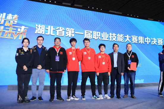 11月19日,湖北省第一届职业技能大赛移动应用开发项目在武汉国际博览中心落下帷幕,来自BB贝博艾弗森官方网站计算机科学与技术专业的3名参赛选手王杰、熊福豪、雷伟分别荣获金、银、铜奖。湖北省人力资源和社会保障厅厅长刘艳红为金牌获得者王杰颁奖,学校副校长赵北平参加了颁奖典礼。