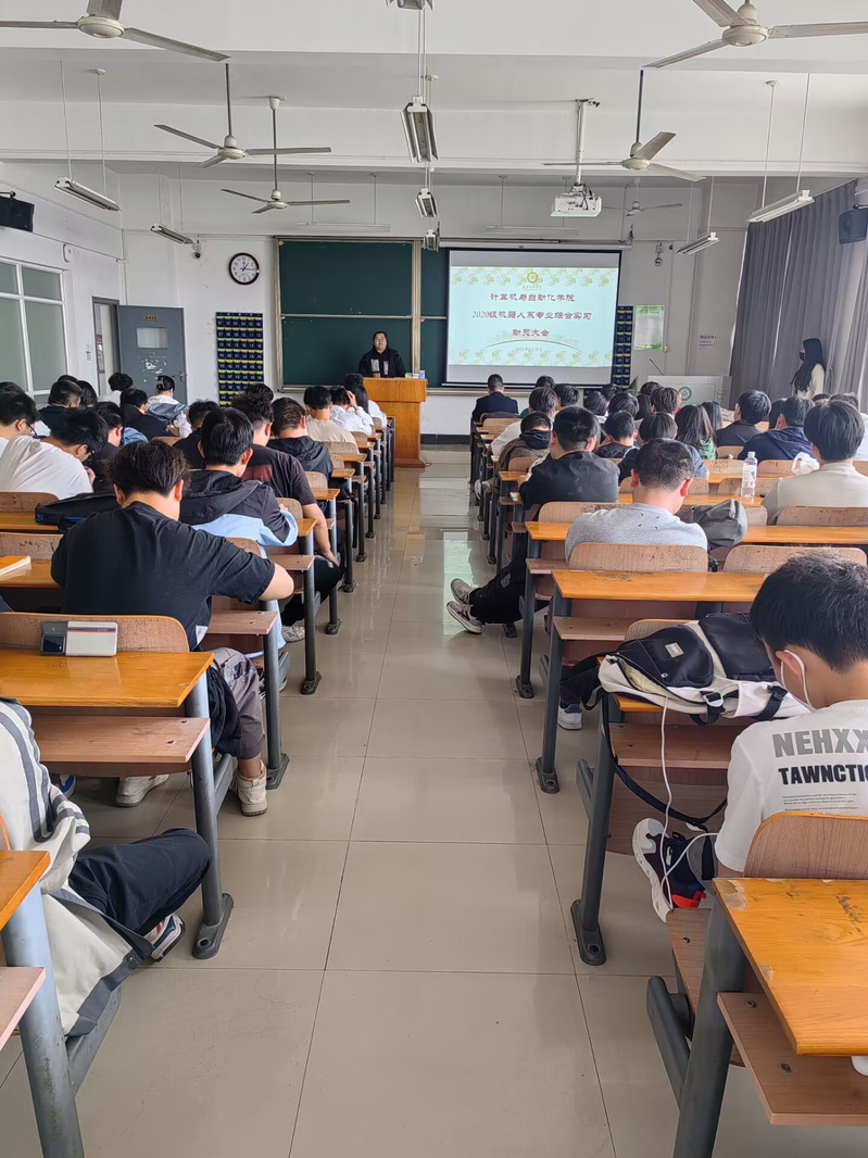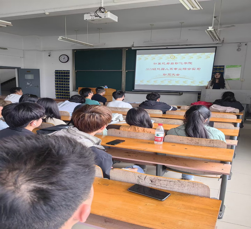 新闻中心讯(通讯记者:周阳钰)2023届专业实习动员大会在BB贝博艾弗森官方网站综合楼211正式开展,教学副院长胡成松针对20级机器人系关于考研、考公、和常规情况的专业实习要求和具体安排以及院长刘雄华对专业实习中的日常出勤打卡、与实习指导老师的联系要求进行了强调,党总支书记吴艳对专业实习期间的学校住宿、评优安排和求职简历要点进行了解说。