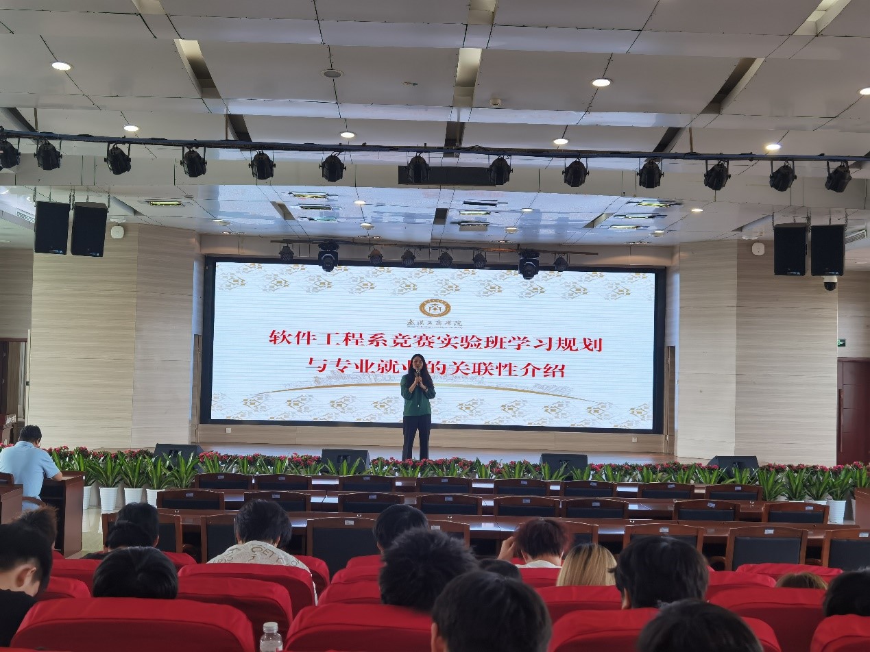 接下来,由竞赛实验班的老师代表们一一上台发言,对竞赛实验班的课程安排做了详细的介绍。诚然,加入了竞赛实验班,学习的时间和难度肯定会大大增加,意味着学习的压力以及休息的时间都会大幅改变,可能会让你焦虑,会让你感到不适应,但如果你能克服困难,坚持下来,老师每次布置的任务都能完成,相信一定能收获不一样的大学生活。