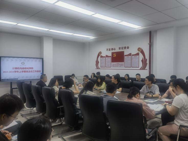(通讯记者:米兰)为进一步加强班级管理,充分发挥班主任的指导作用,计算机与自动化学院于9月20日中午12:40在117召开了班主任工作会议。会议由学院党总支书记吴茜主持,2021、2022、2023级辅导员及各班班主任出席了本次会议。