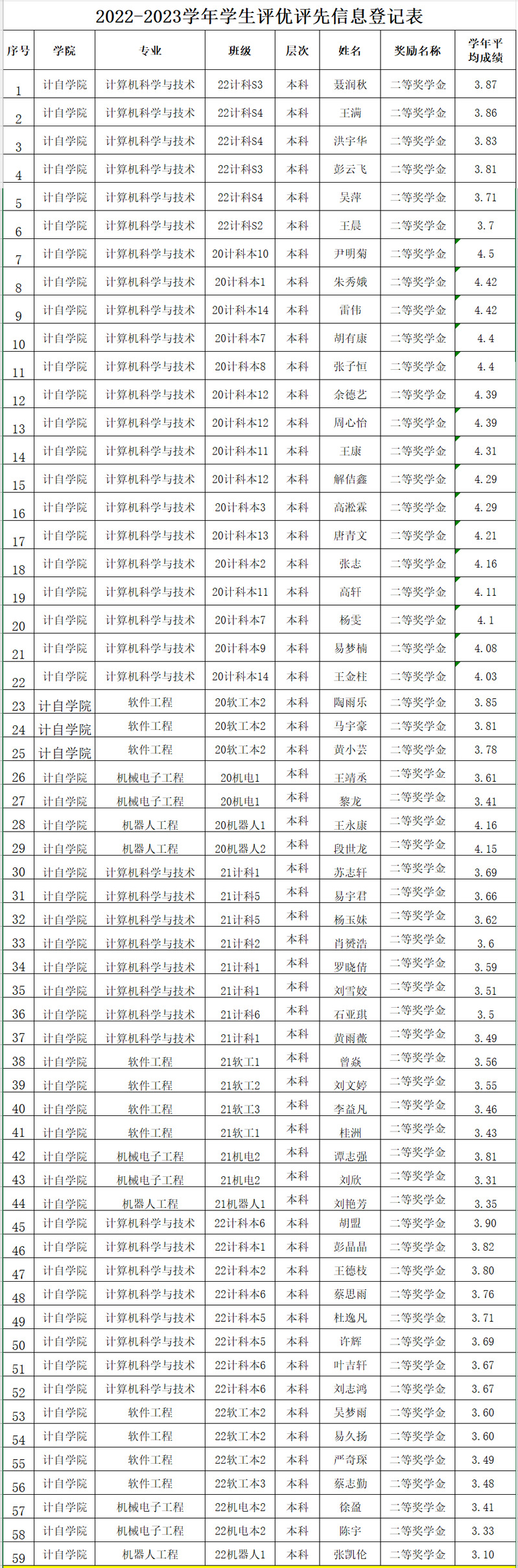 二等奖学金获奖名单