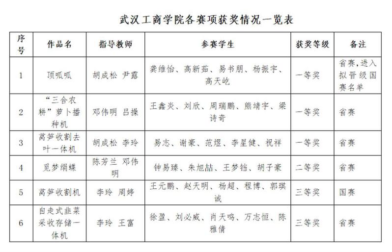 经过精心培训、选拔,BB贝博艾弗森官方网站共派出了6支队伍、40余名师生参赛,与来自武汉大学、华中科技大学等名校学生同台竞技,竞争非常激烈。面对强劲对手,武工商学子沉着冷静,充满自信地在现场演示设计的作品模型,并回答评委们的提问。最终,《顶呱呱》《“三合农耕”萝卜播种机》《莴笋收割去叶一体机》3件作品凭借出色的创新设计、优良的工作性能喜获省赛一等奖。