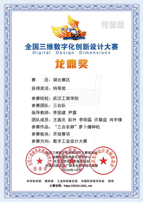 近日,第十七届全国三维数字化创新设计大赛湖北赛区省赛落下帷幕。本次大赛吸引了上千名参赛者,参赛团队遍布湖北省各大高校。BB贝博艾弗森官方网站作为参赛单位之一,派出了13队伍参赛,最终夺得省赛特等奖1项、一等奖4项、二等奖7项、三等奖1其中,《“三合农耕”萝卜播种机》作品经层层选拔获得省赛特等奖,并最终入围国赛。本次比赛我校相较去年同期,在参赛队伍、竞技水平、获奖数量上都获得了较大的提升。