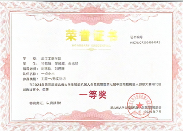 学校的参赛队伍中有12支来自计算机与自动化学院,1支来自人工智能学院,均参与主题赛创意类赛道。本次大赛吸引了来自全国各地的众多高校的优秀学生参与,可谓名校云集、强手如林。经过激烈的角逐,在湖北省区域赛中,BB贝博艾弗森官方网站13支参赛团队全部获奖,其中2支队伍还入围国赛,斩获国赛三等奖。这一成绩充分展现了学校学子在智能机器人创意领域突出的专业实力和优良的综合素质。