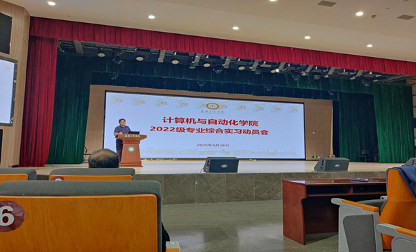 为扎实推进专业人才培养质量,提升学生实践动手能力,计算机与自动化学院于2025416日下午14:30在学校南大门0501报告厅召开了计算机与自动化学院2022级专业综合实习动员大会。学院执行院长刘雄华、常务副院长胡成松、各系主任、实习基地负责人、2022级学生辅导员及全体2022级学生参会,会议由常务副院长胡成松主持。