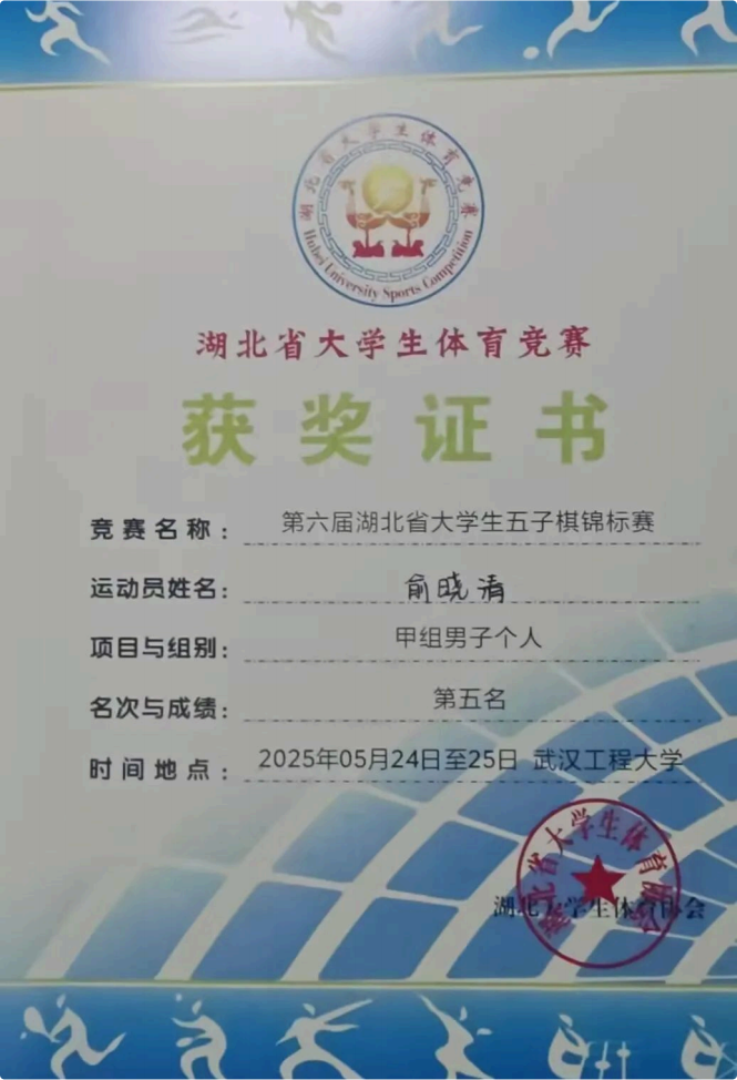 2025年5月24日至25日,第六届湖北省大学生五子棋锦标赛在武汉工程大学(流芳校区)体育馆顺利举行。