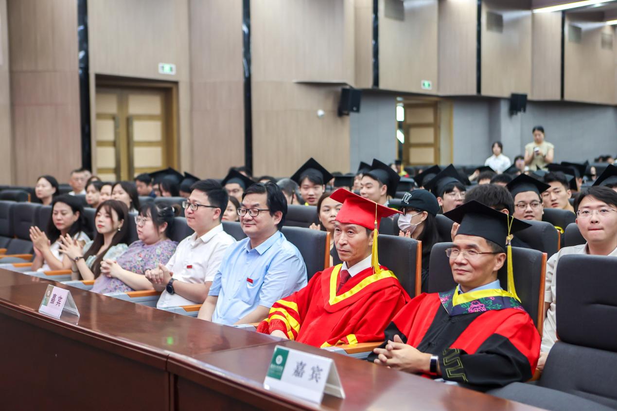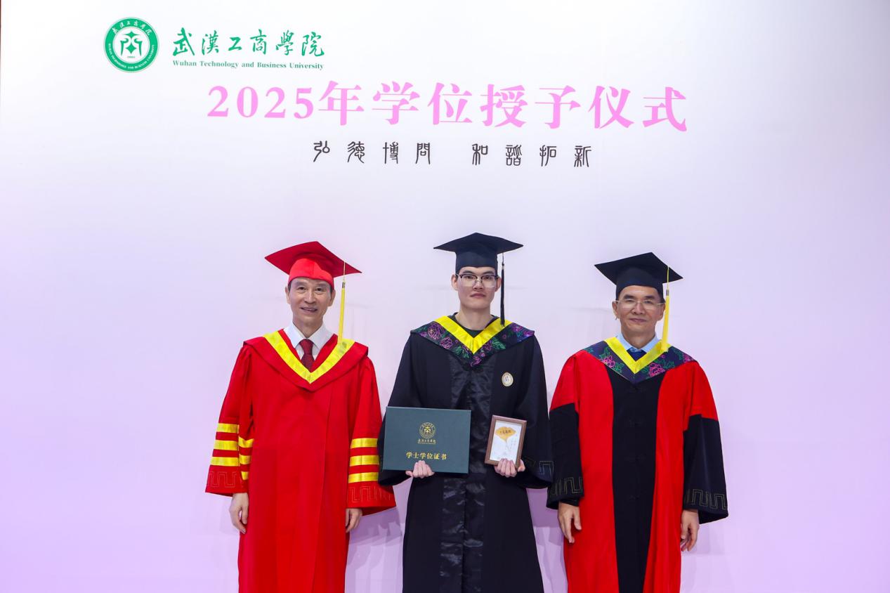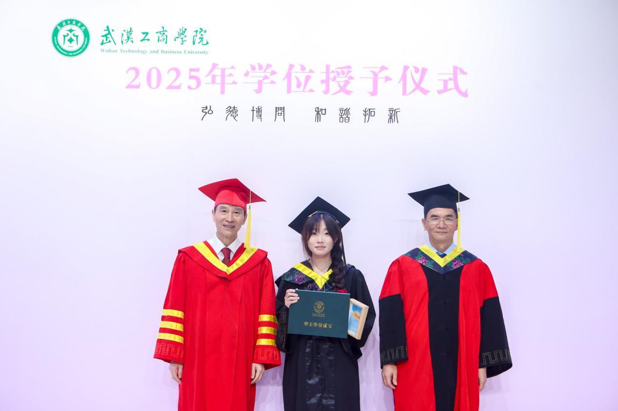 紧接着,何院长郑重捧起学位证书,与登台学子一一握手、对视、微笑,将证书递到他们手中。这小小的证书,凝聚着师长认可,也饱含着对学子奔赴新途的信任。用镜头定格每一幕,让这份荣耀与感动,在快门声里成为永恒。