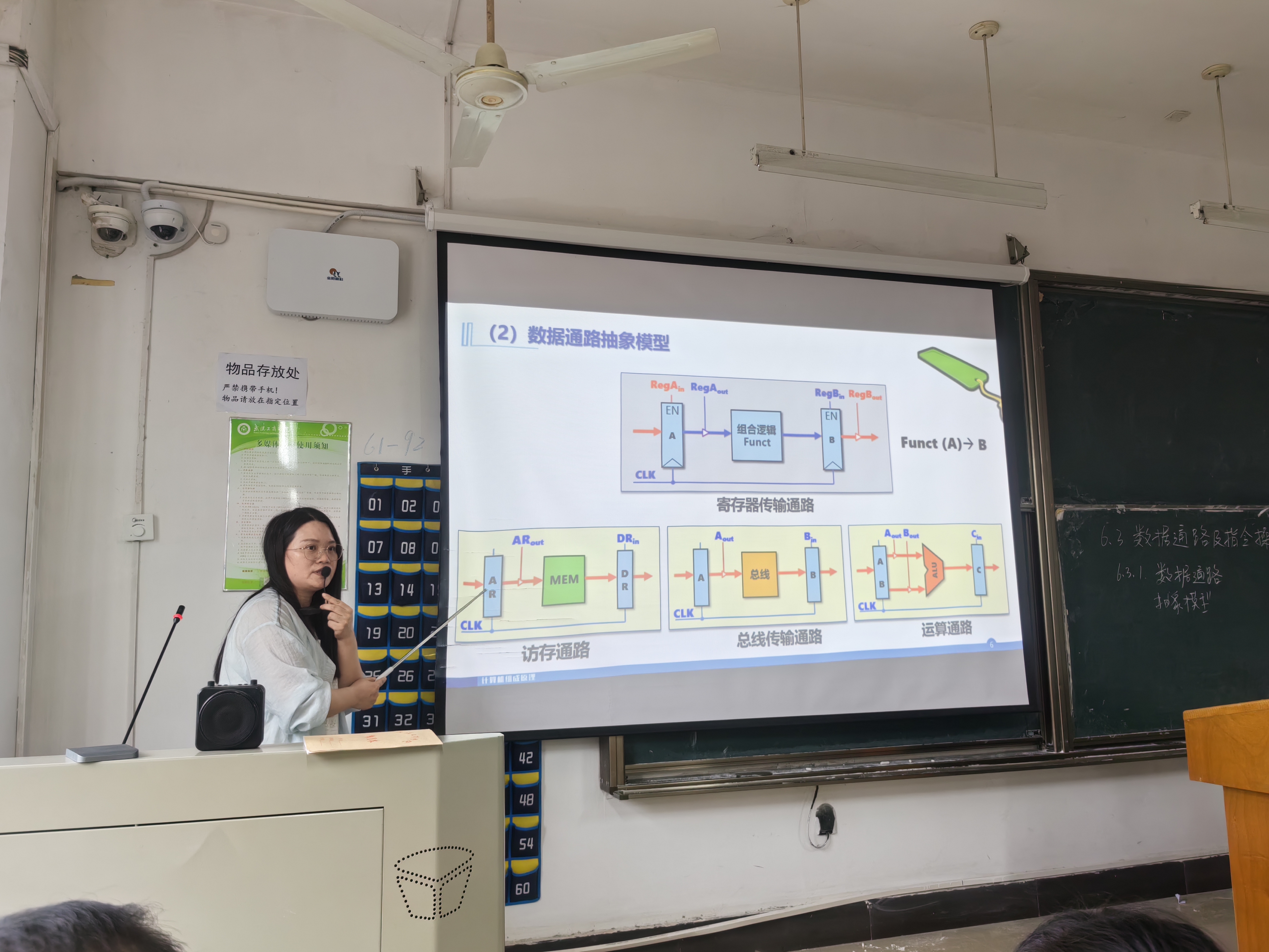本次示范课活动分为两场,分别由高保红老师和方文娟老师主讲。高保红老师以《计算机组成原理》为主题,通过图文并茂的PPT展示和生动的讲解,深入浅出地阐释了课程核心内容。方文娟老师则围绕《离散数学》展开教学,结合实例讲解,注重学以致用,有效激发了学生的学习兴趣。两位老师均全程脱稿授课,教学环节设计完整,课堂节奏流畅,展现了扎实的教学功底和充分的课前准备。