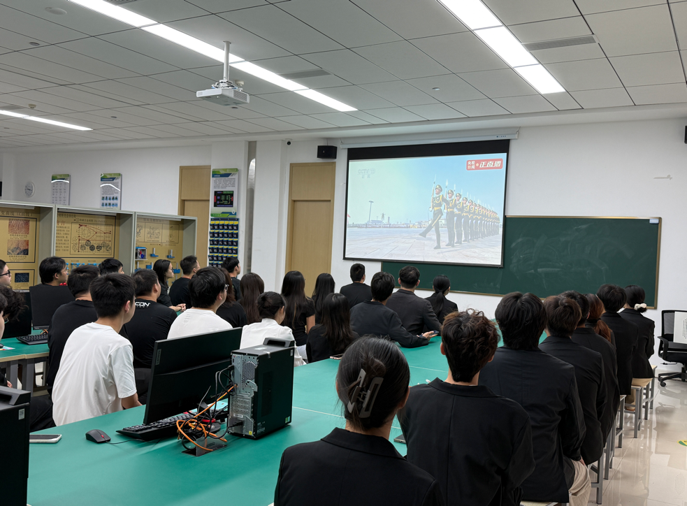 直播过程中,师生们聚精会神,目光紧随着画面中整齐铿锵的受阅方队、硬核亮相的国防装备,当熟悉的旋律响起、当致敬先烈的环节出现,现场多次响起自发的掌声。大家在震撼与感动中重温抗战岁月的不屈精神,深刻感受如今国家的强盛与和平的珍贵。