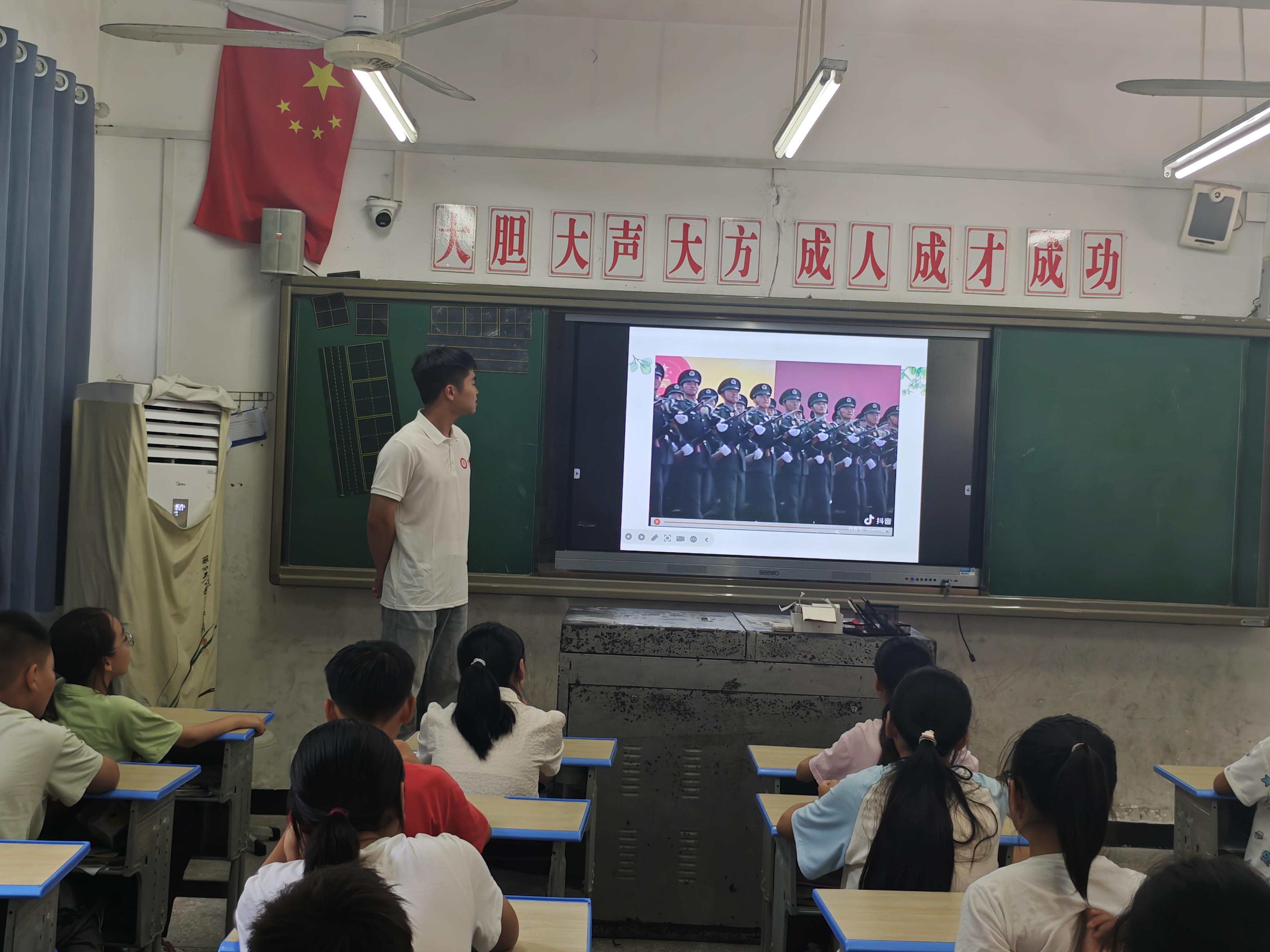 临近课程尾声,李老师给大家展示了我国阅兵以及军演的视频。视频中,整齐的方阵、先进的武器装备以及国家在各领域取得的辉煌成就,让同学们热血沸腾。李老师借此告诫大家,强大的国家是我们坚实的后盾,我们应心怀感恩,热爱祖国,努力学习,将来为国家的繁荣富强贡献自己的力量。