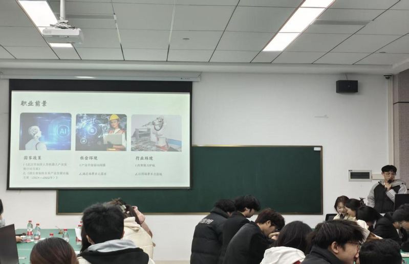 紧接着,17名选手们依次登台,身后的PPT流转着代码、机械图纸与智能场景的剪影,将自身专业的职业蓝图娓娓道来。有人目光灼灼,畅谈用算法优化工业机器人的理想,字里行间是对技术突破的执着;有人从容笃定,拆解从实验室原型到产业落地的规划,每一步都锚定智能服务的远方;还有人眼中闪着光,讲述用编程搭建人机交互桥梁的愿景,让冰冷的机械承载人文温度。