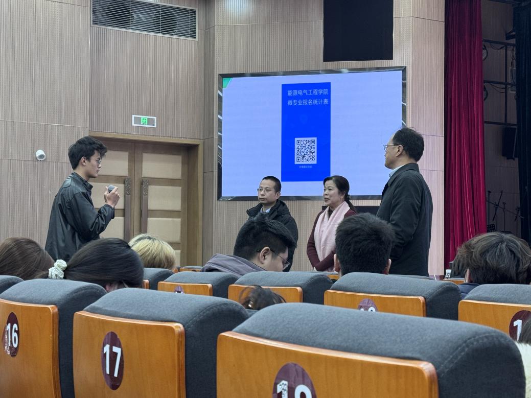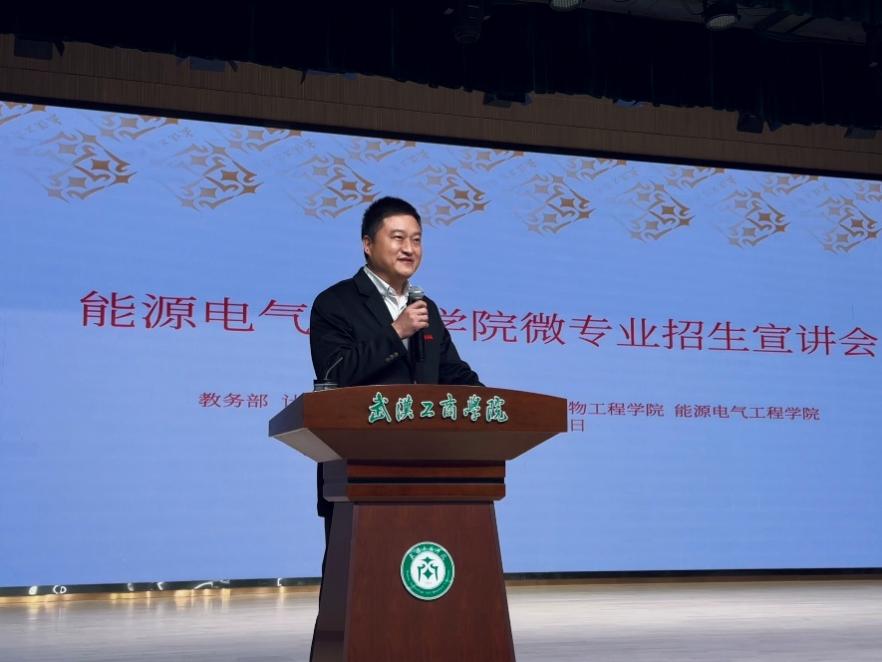 随后,教务部部长王猛介绍了学校开设微专业的重要意义。他以“功以才成,业由才广”寄语在场学子,强调在国家大力推进能源转型与电气化进程的背景下,掌握交叉学科知识、打造复合型能力,是青年学子抓住时代机遇的关键。