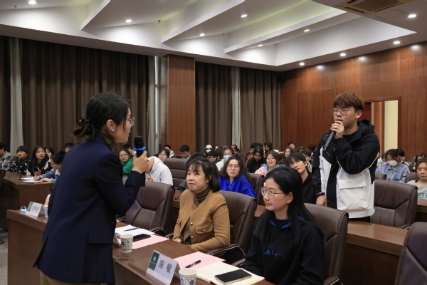 图为张艳华与学生进行互动交流 摄影:胡毅