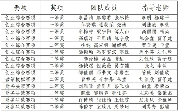 图为获奖情况一览表