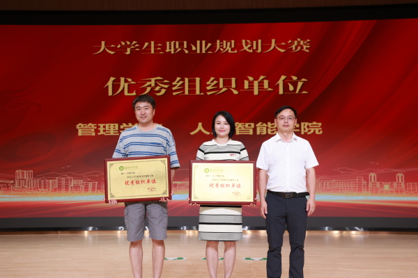 随后,大学生职业规划大赛颁奖典礼举行。学生就业创业指导中心主任金学武宣读了《关于表彰大学生职业生涯规划大赛获奖学生、优秀指导老师及优秀组织单位的决定》,学校领导分别为获奖的单位和个人颁奖。