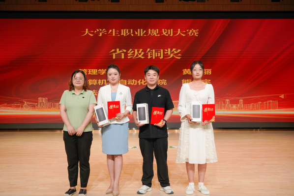 图为学校领导分别为获大赛金、银、铜奖的个人颁奖 摄影:贺熊邹