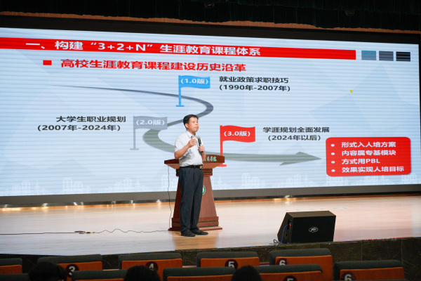 图为赵北平副校长做题为《高校生涯教育本土化探索课程体系建设实践》的讲座 摄影:杨小婷 贺熊邹