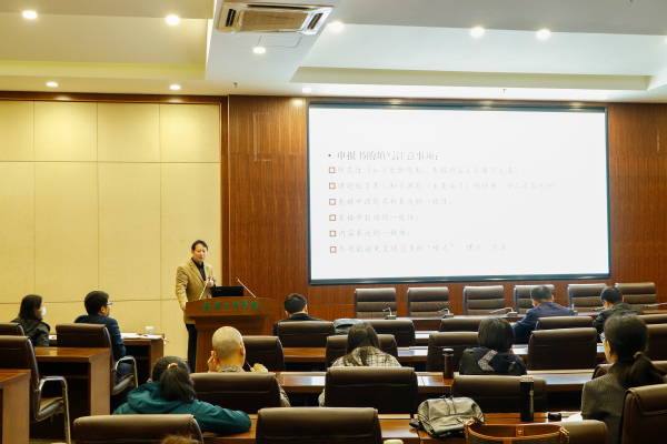 在交流环节,教师们踊跃发言,就现阶段遇到的问题纷纷向黄教授请教,黄教授结合多年的评审经验一一进行了细致的解答,并对申报材料撰写与成果凝练等重点问题进行了详细的说明,参会教师均表示收获颇丰。