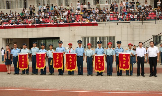 9月23日上午8点30分,我校田径运动场上彩旗飘扬,军乐嘹亮,我校2013级新生军训成果汇报大会暨开学典礼在此隆重举行。空军预警学院黄陂士官学校政委吕路平上校,我校领导彭秀春、张金隆、陈伟、陶梅生、向太斌、刘腾红、卢炎生、桂裕清、张俊、王程军,二级学院领导张金海、童光荣、李明、张兆学、陈敏、魏华、王海文、周强,学工部部长陈义文出席典礼。大会由校长助理、校办主任张俊主持。
