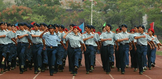 随后,阅兵式开始。来自我校各学院的58支军训方队在此接受首长的检阅。“同学们好!”“首长好!”“同学们辛苦了!”“为人民服务!”在军训团团长的陪同下,校党委书记陈伟检阅方阵。